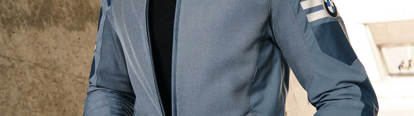 Polyester or polyester-blend jackets and trousers from the BMW Motorrad collection meet the latest environmental protection standards. They are light, water-repellent and have a high abrasion resistance. Machine-washable on a delicate cycle at low temperatures.